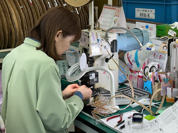 単線、多芯ケーブル、シールドケーブル、フラットケーブルやハーフピッチコネクタなどハーフピッチコネクタなど細かな作業と丁寧な物づくりが求められる製品です。